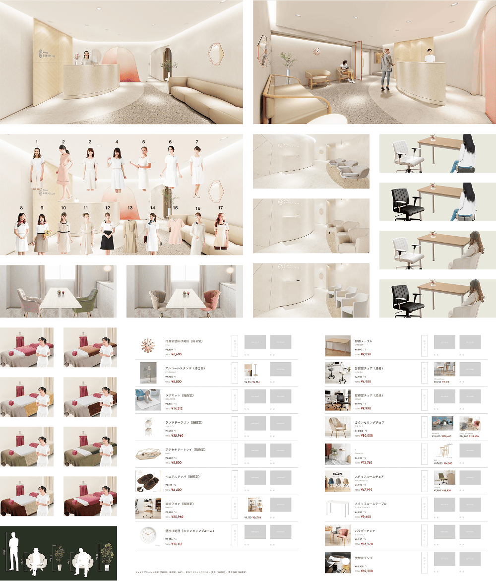 什器・備品・衣装を「見た目」「コスト」「メンテナンス性」「機能性」で選定し、パースや合成ビジュアルで具体的にご提案。