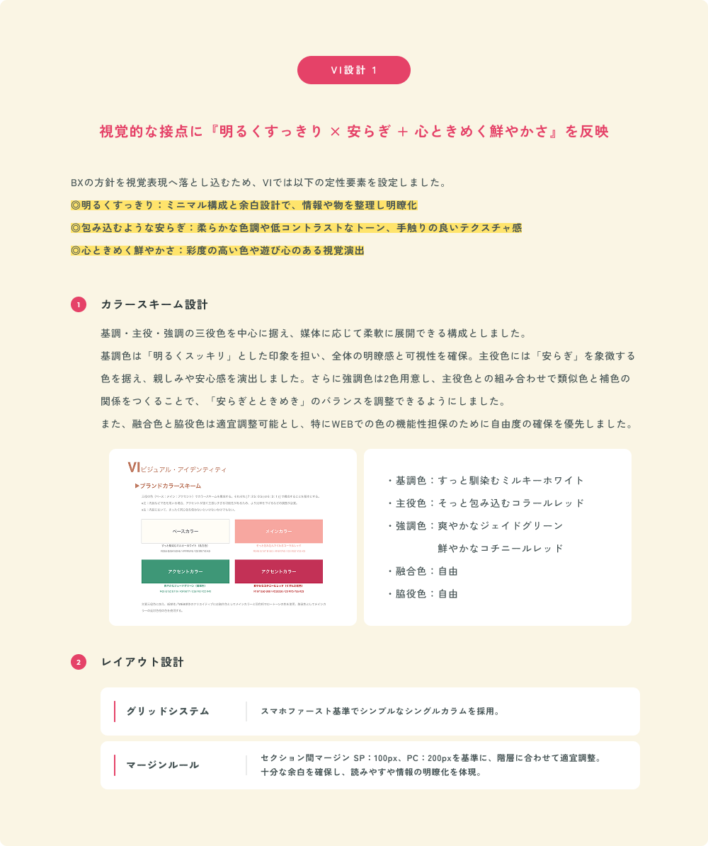 視覚的な安心感を重視し、明瞭でありながらやさしいトーンに仕上げました。
