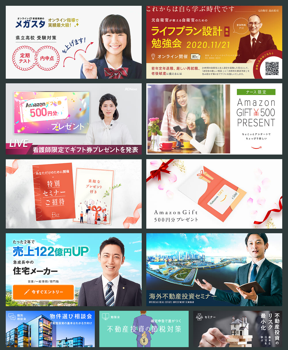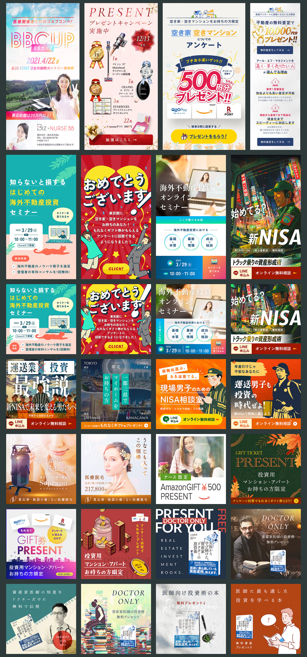 WEB広告バナー群 * 誘目力と瞬間可読性を最適化